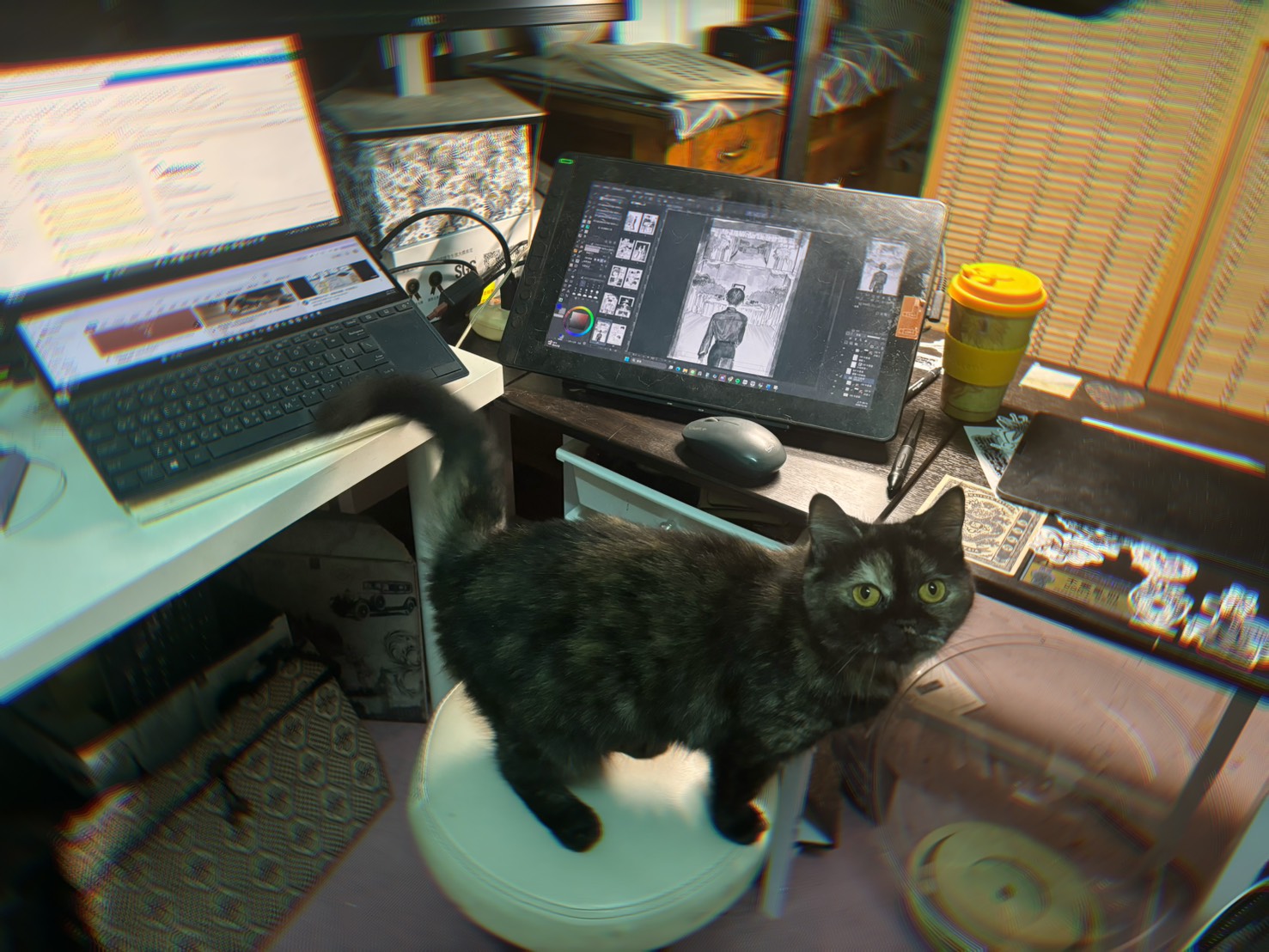 I work digitally using Clip Studio Paint. I switch between an iPad and a drawing tablet depending on what feels more comfortable at the moment.