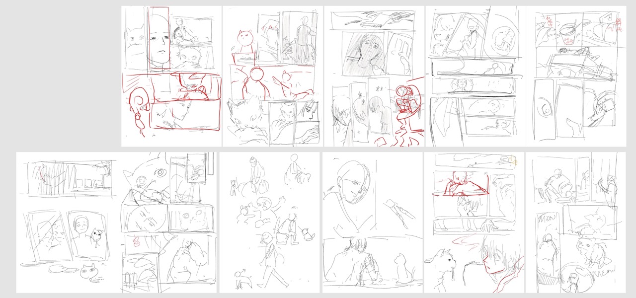 後來我開始逆向思考—情感如何被產生?這樣的想法讓我比較熟悉的去掌握角色可能會面臨的事情,於是規劃出一些腳本結構的片段才慢慢地寫了這次的作品。但我還是很苦手於這樣創作的分鏡,這樣的程序令我難以抓住分鏡中的情感節奏。這次的作品仍然認為還有很大的進步空間。