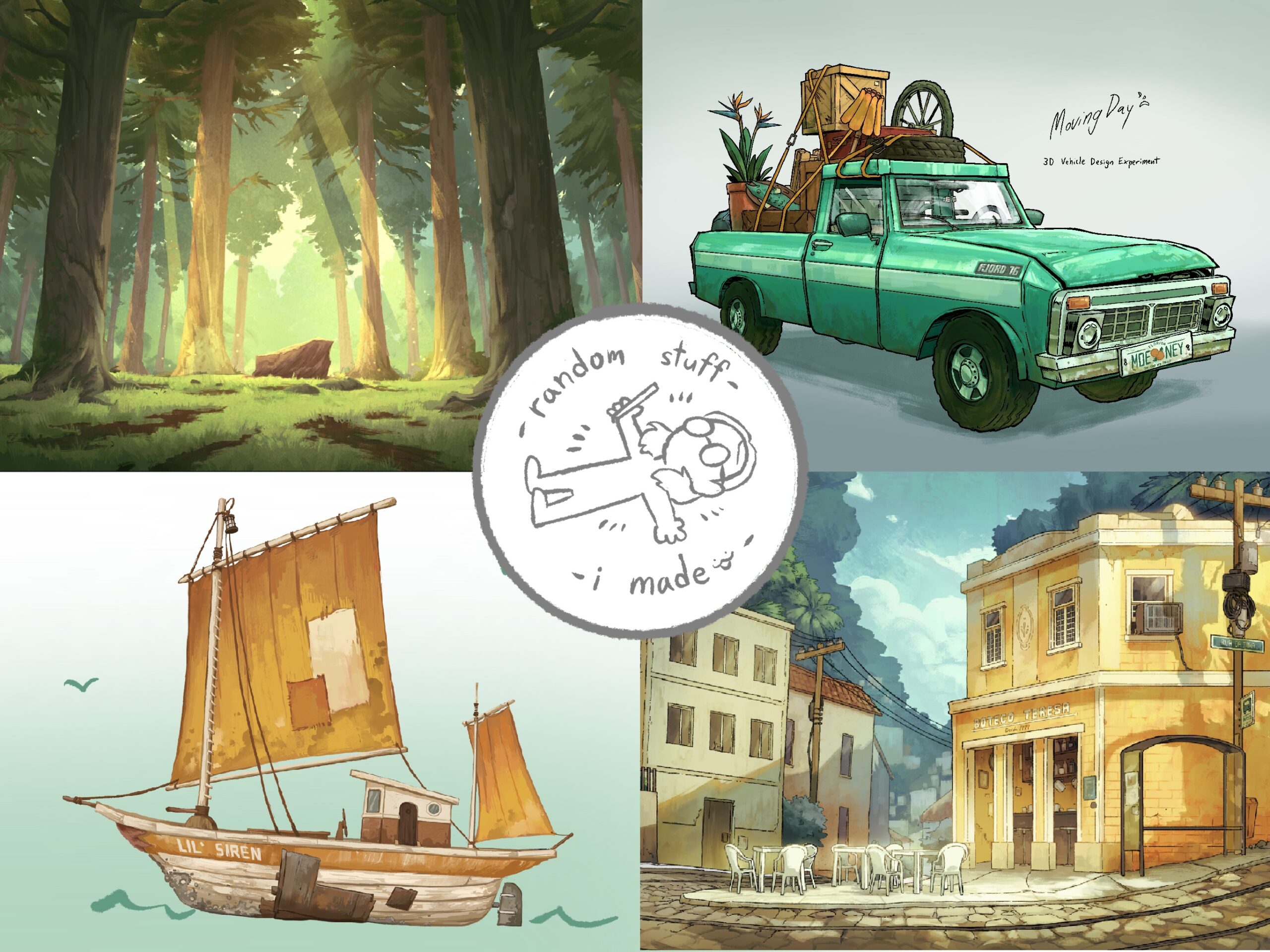 My current goal is to get work in the TV animation industry making background art. I like storytelling through the details of an environment. Right now, I work a couple of jobs in sales, and I assist at a local art gallery. I’m also trying to get a teaching certificate to teach art at public school. Plus, I have a coffee job… Wow, what a stereotype.