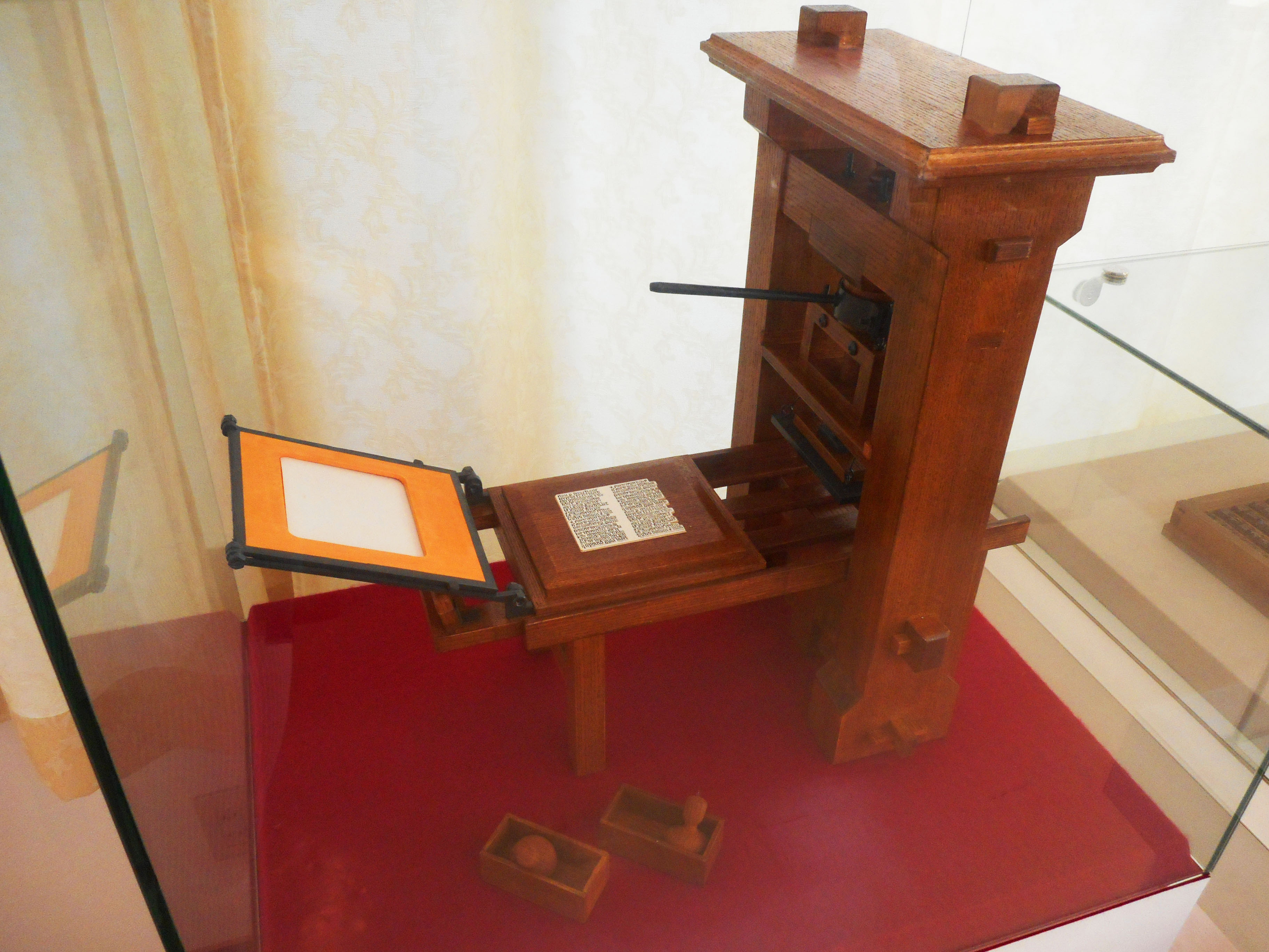 You can see a miniature letterpress and replicas of some of the tools that were used with them.