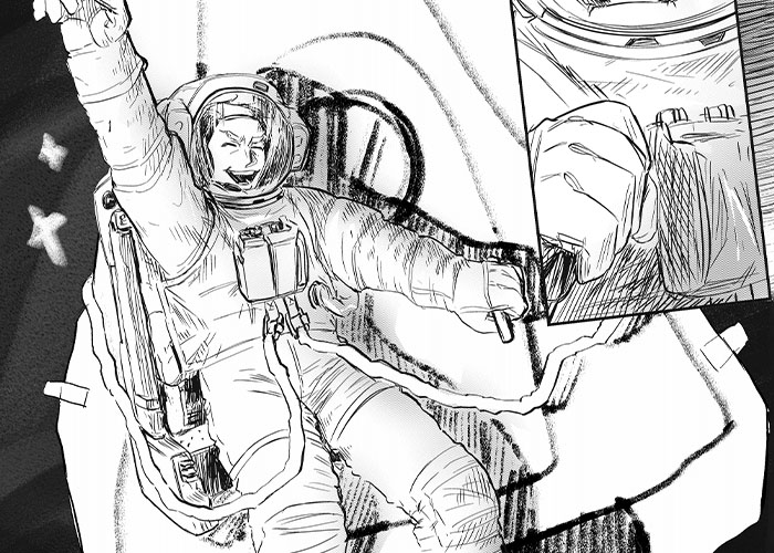 In a short number of pages, you’ve managed to thoroughly show the bond between the human and the alien, and the final scene is really moving! It’s especially difficult to show an alien’s emotions (since they don’t have human features), so it’s incredible that you were able to show its emotions so skillfully. If the scene in which they deepen their bond had a special interaction between the two of them, and then they got into an even bigger pickle than the chase scene, I think the last scene would resonate even more deeply. In the future, if you can think of ideas for story developments that will also help develop your characters, I think you’ll be able to create an even more wonderful story.