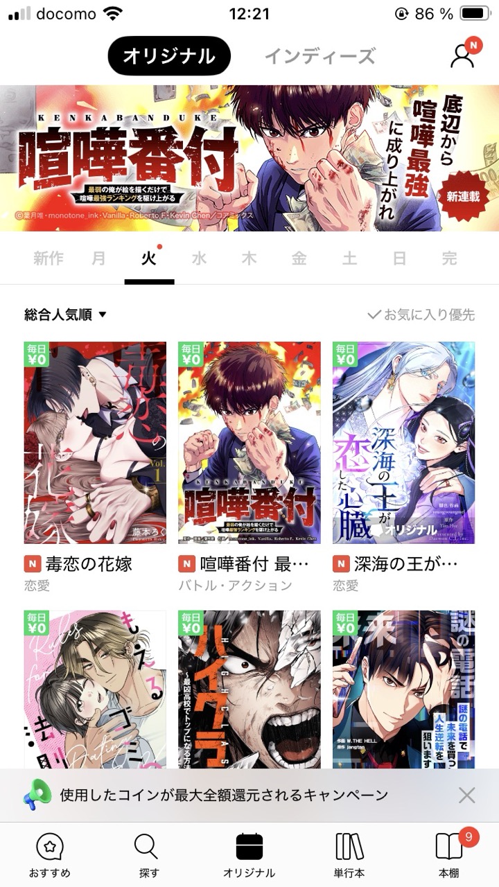 COAMIX Inc. is pleased to announce that, starting from September 30 (Tue.), the new webtoon series, 『喧嘩番付 最弱の俺が絵を描くだけで喧嘩最強ランキングを駆け上がる』(lit. “Street Fighter Ranking”) has been serialized on LINE Manga and eBookJapan!
